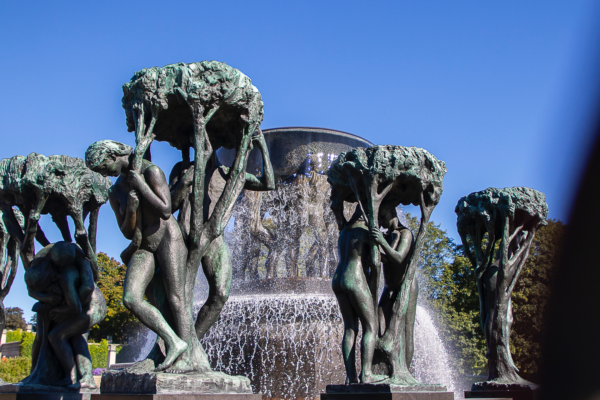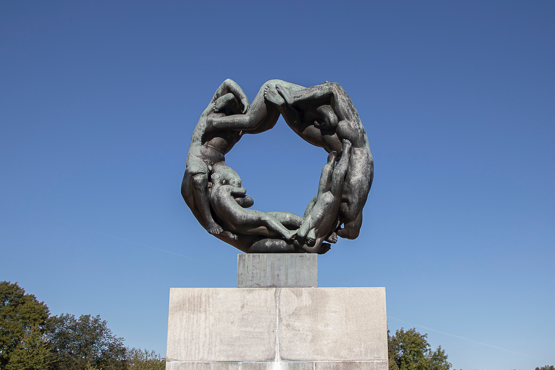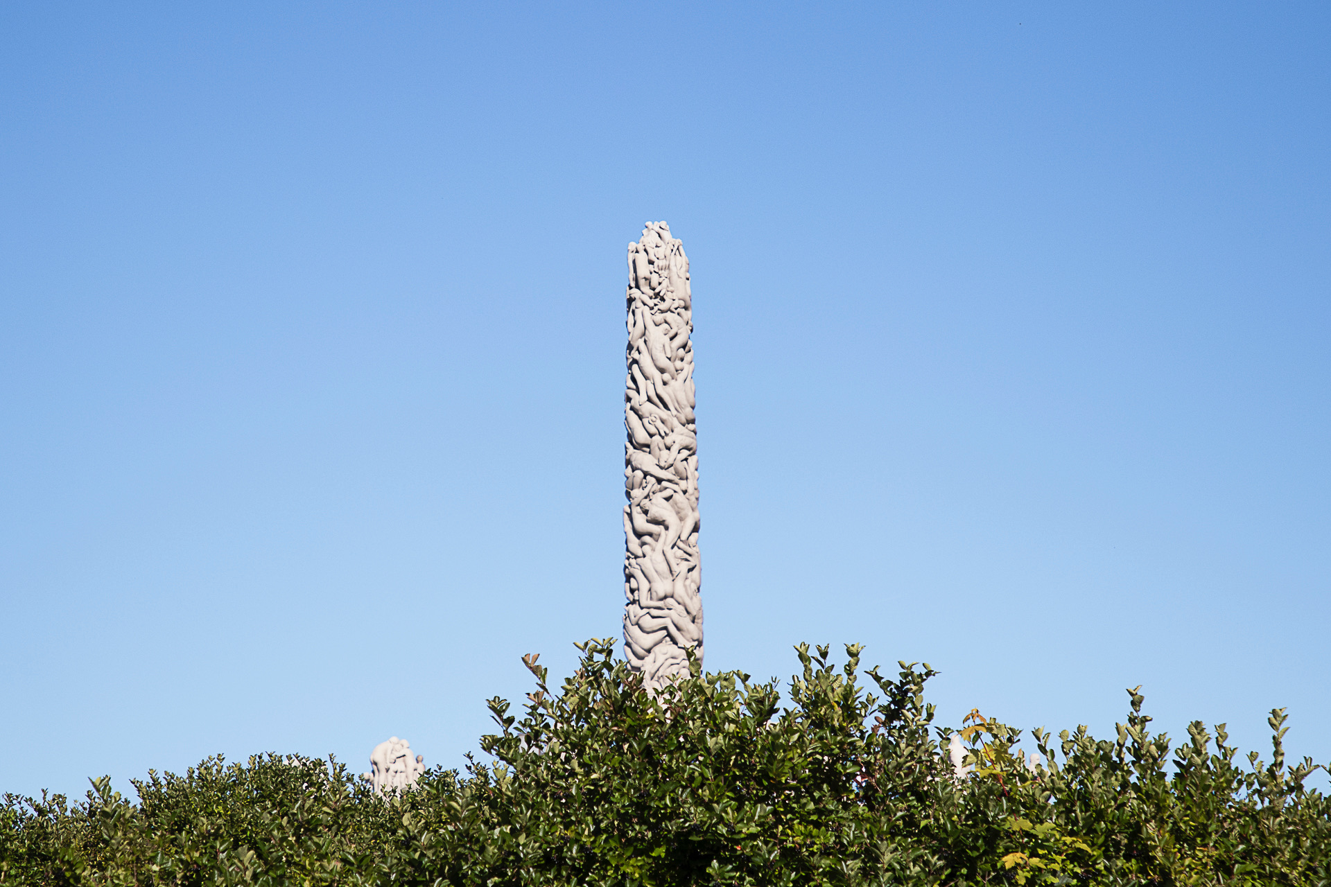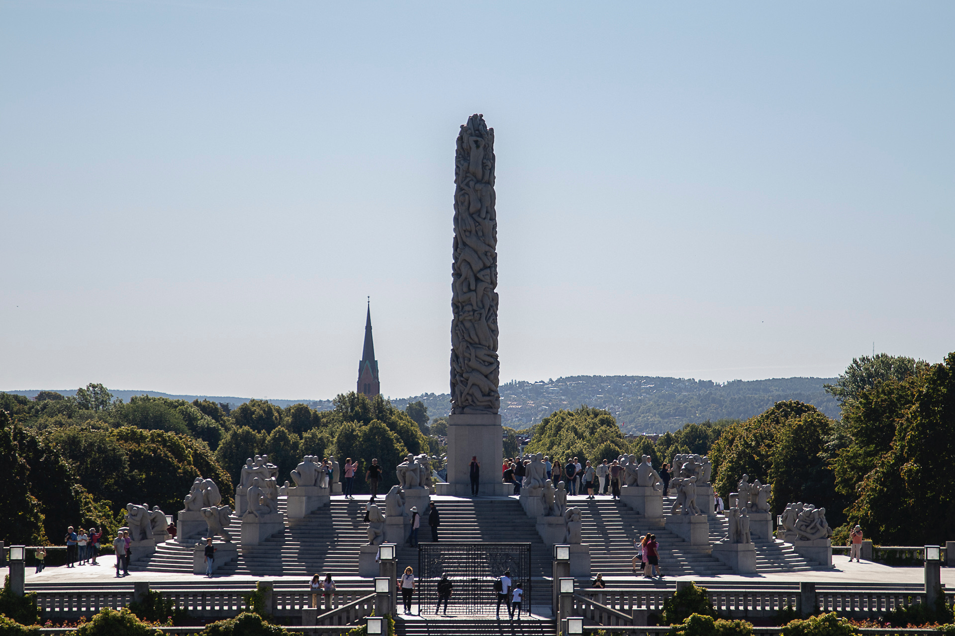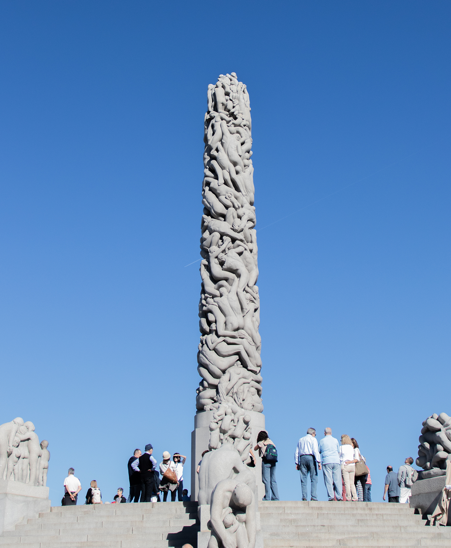 El parque es una exposición permanente de la obra del escultor noruego Gustav Vigeland, formada por una serie de figuras humanas de gran realismo que convergen en El monolito. Esta figura central muestra una sucesión de cuerpos entrelazados entre sí, desde la edad adulta en la base hasta la niñez en la cúspide. La imagen sugiere un relevo generacional constante, algo que resulta familiar para este profesor que observa con atención todos los detalles logrados por el artista.